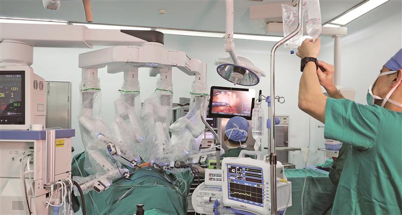“对于‘达芬奇’来说,它可以延伸外科医生的手臂,利用灵活的操作手臂突破人手的局限。”冯宁翰认为,比起传统的腹腔镜手术,机器人的操作臂可灵活翻转,不仅比手小,还可以过滤直接操作时的手部颤动,只要接到指令,就能在极其狭小的空间内穿梭自如,并精准完成相应操作。沈伟也给记者打了一个形象的比喻,“就像做骨盆骨折手术,此类手术实施起来非常困难,把骨盆比作‘桌子’,在‘桌子’底下操作对于医生的手臂来讲就有局限性,而机器手臂就可以像关节一样拐弯伸到‘桌子’下面进行手术。”创伤小、术后恢复快,机器人手术带给了患者优质体验感,受到了越来越多的患者认可。