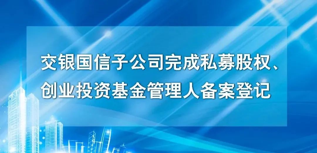 2022年12月29日,交银信托子公司交银国信私募基金管理有限公司顺利完成中国证券投资基金业协会私募股权、创业投资基金管理人备案登记。