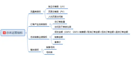 从流量、订单、总体销售业绩、整体指标进行把控,对运营的电商平台有大致了解,到底运营得如何,是亏是赚。