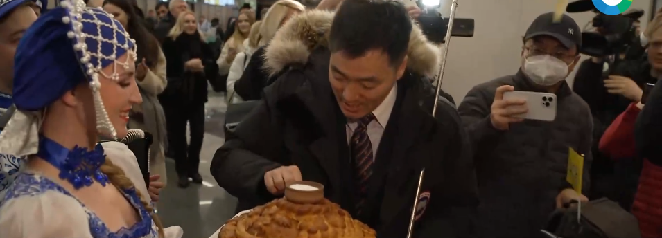 据俄新社报道,该中国旅游团成员当天是从深圳飞抵莫斯科的,他们在机场受到了热情接待。报道称,俄方在机场举行了欢迎仪式,穿着传统服装的俄罗斯姑娘用圆面包和盐迎接他们(俄罗斯迎接客人的隆重礼节——编者注),还有一些人员跳传统舞。