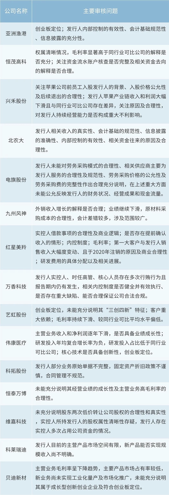 截至2022年三季度,创业板IPO被否企业已有15家,占A股IPO被否企业的62.50%。这15家创业板IPO被否企业的主要审核问题如下: